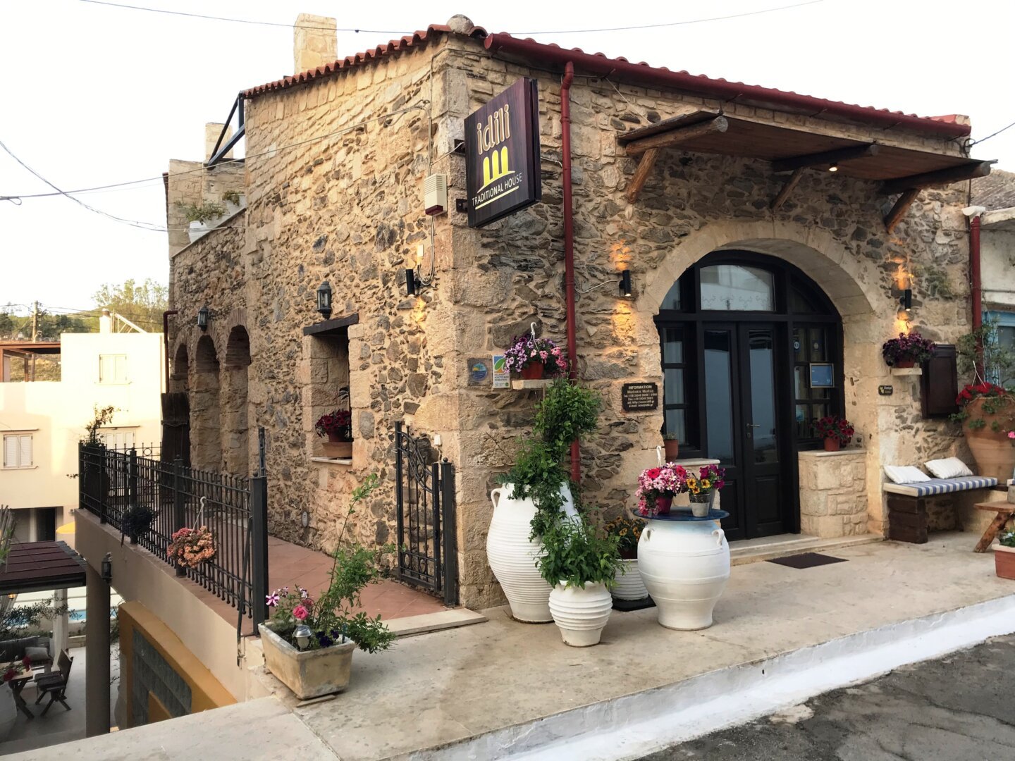 The three traditonal apartments of the guesthouse “Agioklima”, “Hyakinthos”, and “Jasemi” and comfort apartment “Margarita” have been reconstructed with sensitivity and taste, they perfectly combine functionality and comfort, with Cretan tradition. It is a preserved, traditional, stone-built building, with terraces and a garden, built at the end of the 19th century.